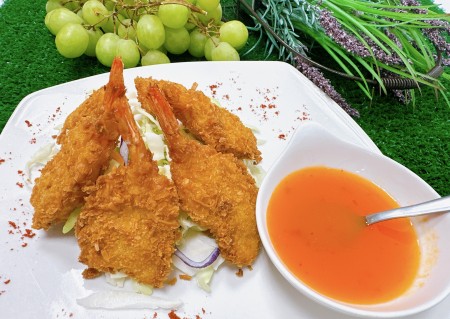 Deep-fried Veggies roll. Served with sweet and sour sauce.